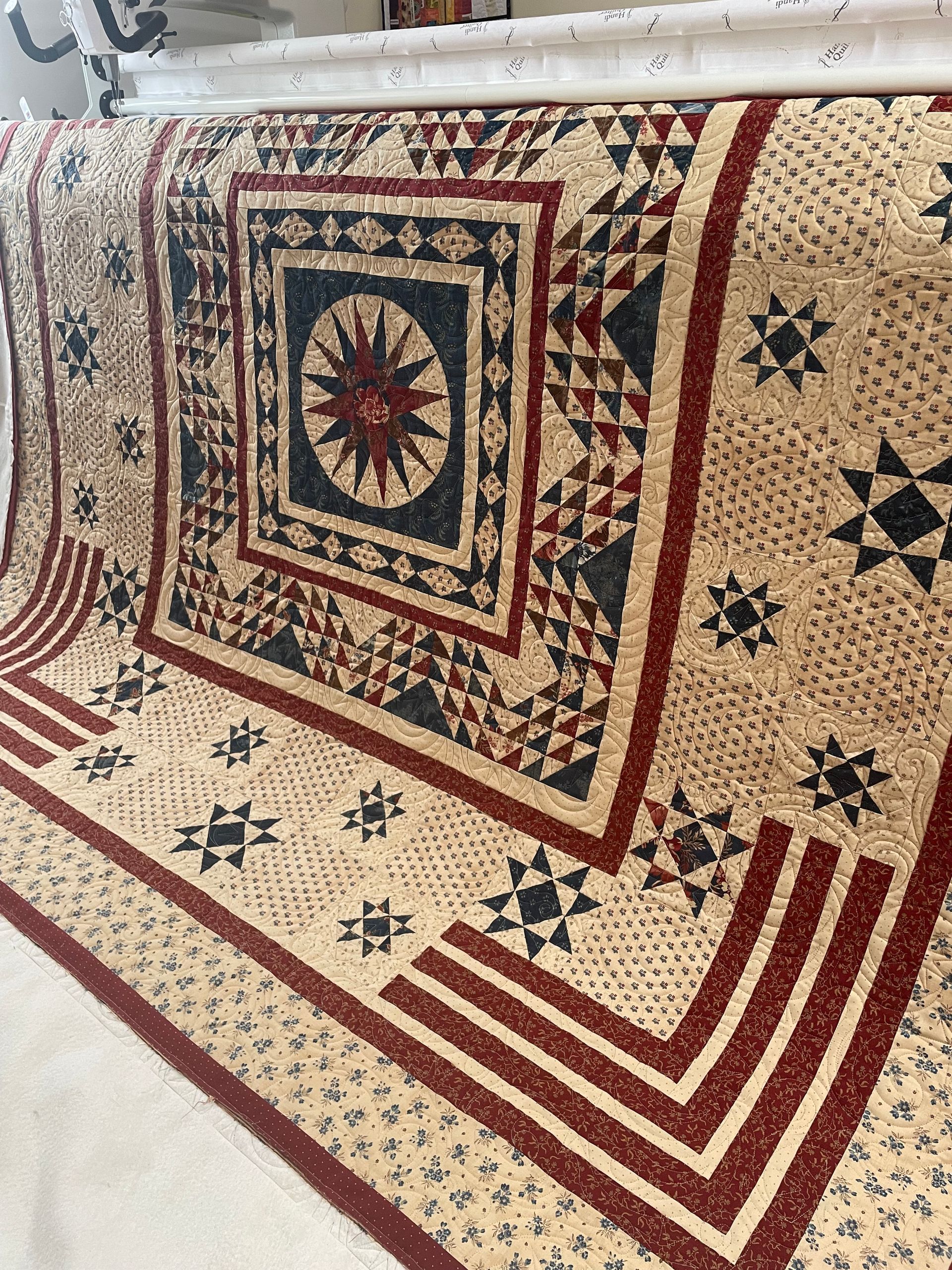 “jenny provides an awesome service which includes extremely competitive pricing and a very fast turnaround. Jenny quickly answers questions about the quilting process and makes helpful suggestions for design & thread selection. Jenny has completed several quilts for me and I have been delighted with all of them. I shall definitely be sending more quilts Jenny's way.”